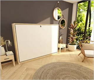 In kleinen Zimmern können Sie mit einem 140 x 200 cm Wandklappbett den Raum optimal nutzen. Tagsüber ist das Bett zusammengeklappt und sieht aus wie ein Schrank. Mit einem Design-Frontplatte sehr schön. Sie gewinnen extra Platz zum Bewegen und Leben. Dieses Wandklappbett bietet guten Schlafkomfort und praktische Vorteile. Ein Wandklappbett mit den Maßen 140×200 cm bietet viele Vorteile: